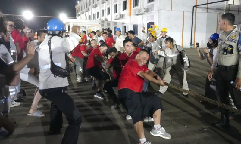 在基地的生活廣場上,陣陣吶喊加油聲響徹天際,“首屆中印尼員工拔河比賽”正進(jìn)行得熱火朝天。每一次奮力的拉扯都凝聚著團(tuán)隊(duì)的力量與信念,在一聲聲口號(hào)里,中印尼員工擰成一股繩,咬緊牙關(guān),全力以赴,不僅展現(xiàn)了不屈不撓的精神風(fēng)貌,更在每一次勝利與失敗中體會(huì)到了團(tuán)隊(duì)協(xié)作的真諦和勇于拼搏、不斷前行的精神力量。