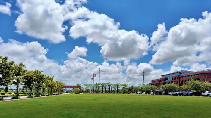 春雨連綿的3月迎來(lái)難得放晴的一天,我在園區(qū)看到這樣的畫(huà)面——中偉司旗與多國(guó)國(guó)旗在藍(lán)天白云下迎風(fēng)飄揚(yáng),讓我感受到中偉國(guó)際化進(jìn)程中的開(kāi)放與融合。于是我拿出手機(jī)拍下這張照片,心中祝愿中偉早日成為全球領(lǐng)先的新能源材料科學(xué)公司。