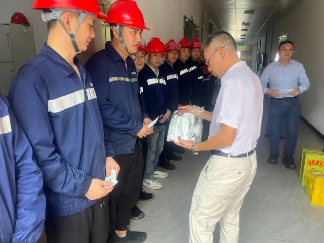 七月驕陽似火,面對“戰(zhàn)高溫、保生產(chǎn)”的考驗,欽州產(chǎn)業(yè)基地總經(jīng)理焦華等班子成員帶領(lǐng)黨員先鋒隊和志愿者服務(wù)隊,為奮戰(zhàn)在一線的員工們送上清甜西瓜、解暑飲品及防暑物資,切實將"為員工辦實事"的責(zé)任擔(dān)當(dāng)落到實處。