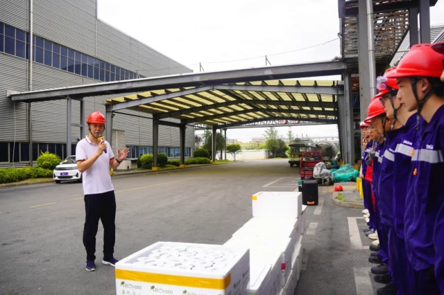 與此同時,寧鄉(xiāng)產(chǎn)業(yè)基地的清涼關(guān)懷同樣“熱烈”。自氣溫攀升以來,寧鄉(xiāng)產(chǎn)業(yè)基地持續(xù)為一線員工配送綠豆沙等飲品。基地總經(jīng)理董本鋼等領(lǐng)導(dǎo)深入車間慰問,關(guān)切詢問職工高溫下的生產(chǎn)生活。基地EHS部還現(xiàn)場分享了“夏季中暑預(yù)防與急救”的知識,強(qiáng)化安全生產(chǎn)培訓(xùn)。
