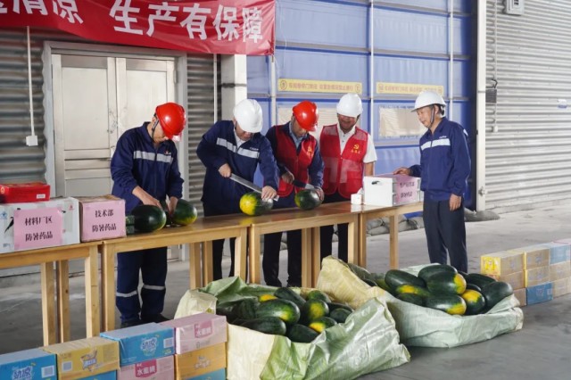 活動現(xiàn)場,慰問小組邊切西瓜邊分物資,帶來一場“及時雨”,驅(qū)散連日酷暑,讓一線員工感受到實實在在的清涼體驗。同時,慰問小組還與員工們親切交流,聽取需求建議,進(jìn)行開門教育,再三叮囑大家在高溫期間要時刻注意防暑,強(qiáng)化安全生產(chǎn)意識,做好個人安全防護(hù),為中偉各項事業(yè)再創(chuàng)佳績、再立新功。